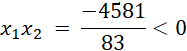 Jedno rozwiązanie jest dodatnie, drugie ujemne.
