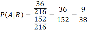 Wypisz wszystkie zdarzenia sprzyjające podanym oraz oblicz ich ilość oraz ilość wszystkich zdarzeń elementarnych. Następnie skorzystaj ze wzoru na prawdopodobieństwo zdarzenia A pod warunkiem, że zaszło zdarzenie B: