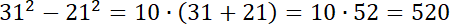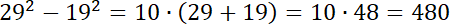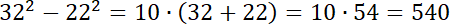 Zauważ, że różnica kwadratów liczb oddalonych od siebie o 10 jest tym samym, co ich suma pomnożona przez 10.