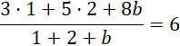 Wyznacz b, jeśli średnia ważona trzech liczb: liczby 3 z wagą 1, liczby 5 z wagą 2 i liczby 8 z wagą b jest równa 6.