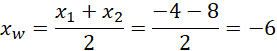. Pierwszą współrzędną wierzchołka, możemy uzyskać poprzez średnią arytmetyczną