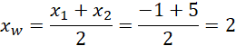 . Pierwszą współrzędną wierzchołka, możemy uzyskać poprzez średnią arytmetyczną
