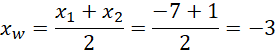 . Pierwszą współrzędną wierzchołka, możemy uzyskać poprzez średnią arytmetyczną