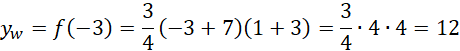 (symetria paraboli). Natomiast drugą, możemy obliczyć poprzez podstawienie pierwszej współrzędnej do wzoru.