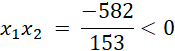 Jedno rozwiązanie jest dodatnie, drugie ujemne.