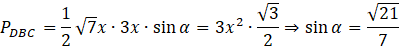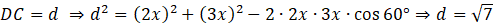 Z twierdzenia cosinusów oblicz długość boku DC, a następnie oblicz pole trójkąta DBC na dwa sposoby i przyrównaj pola.