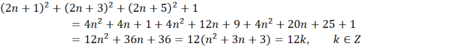 Wykaż, że suma kwadratów trzech kolejnych liczb nieparzystych powiększona o 1 jest podzielna przez 12.