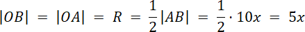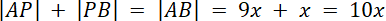 Oznacz |AP| jako x i |PB| jako 9x, O jako środek okręgu