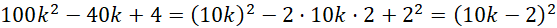 w postaci iloczynu za pomocą wzorów na kwadrat sumy lub kwadrat różnicy.