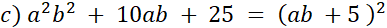 Przekształcono wyrażenia na kwadrat sumy lub kwadrat różnicy.