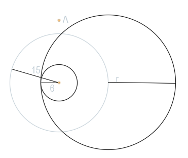 Dane są współśrodkowe okręgi o promieniach 6 i 15, podaj długość promienia okręgu, który jest styczny wewnętrznie do mniejszego z okręgów, a jego środek leży na większym okręgu.