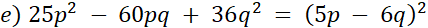 Przekształcono wyrażenia na kwadrat sumy lub kwadrat różnicy.