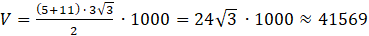 Masz podany przekrój poprzeczny wału ochronnego. Jest on trapezem, którego górna podstawa ma 5 m, a ramiona po 6 m i są one nachylone do dolnej podstawy pod kątem 60º. Masz wyznaczyć dolną szerokość wału oraz obliczyć, ile ziemi należy użyć do usypania takiego wału o długości jednego kilometra. Wynik podaj z dokładnością do jednego metra sześciennego.