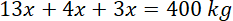 W pewnym stopie trzech metali stosunek wagowy metali A, B i C wynosi 13 : 4 : 3. Aby zachować stosunek, musisz pomnożyć stosunek przez taką samą liczbę x, wtedy będziesz wiedzieć, ile każdego metalu należy użyć.