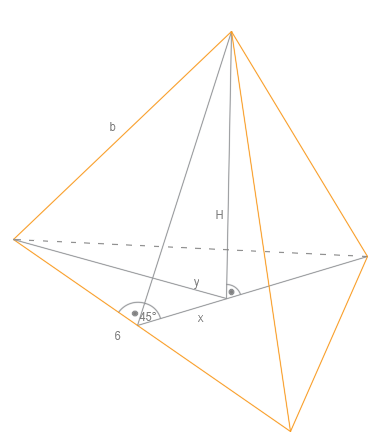Trójkąt w podstawie jest równoboczny więc x wynosi: