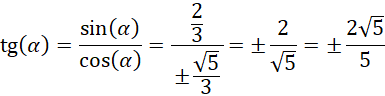 Zauważ, że skoro kąt nie jest określony, to funkcje cosinus i tangens przyjmują wartości dodatnie lub ujemne. Wyznacz wartości tych funkcji, korzystając z jedynki trygonometrycznej