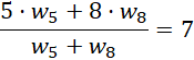 Podaj zależność między wagami liczb 5 i 8, jeśli średnia ważona jest równa 7.