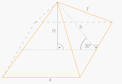Dany jest ostrosłup prawidłowy, znajdź długości oznaczonych odcinków.
