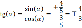 Zauważ, że skoro kąt nie jest określony, to funkcje sinus i tangens przyjmują wartości dodatnie lub ujemne. Wyznacz wartości tych funkcji, korzystając z jedynki trygonometrycznej