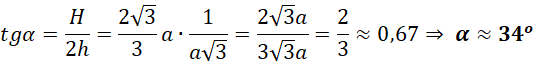 Oblicz kąt nachylenia krótszej przekątnej do płaszczyzny podstawy.