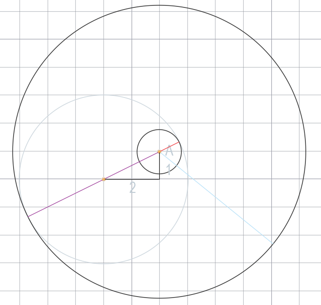Dane punkt A, okrąg ma w nim środek. Jaki będzie jego promień, jeśli jest styczny do narysowanego okręgu?