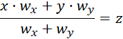 Podaj zależność między wagami liczb x i y, jeśli średnia ważona jest równa z.