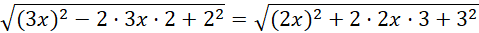 Żeby uprościć wyrażenie wykorzystujemy fakt, że wyrażenie pod pierwiastkiem przypomina wynik przeprowadzenia skróconego mnożenia oraz że jedną z definicji wartości bezwzględnej jest pierwiastek kwadratowy z potęgi.