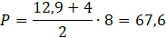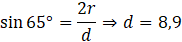 Za pomocą funkcji tangens i sinus oblicz długości boków d i a, a następnie skorzystaj z własności trapezu opisanego na okręgu i wyznacz pole oraz obwód.