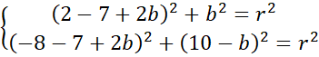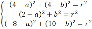 to jego promień. Podane punkty podstaw pod ten wzór. Zauważ, że powstanie układ trzech równań z trzema niewiadomymi, rozwiąż go i zapisz szukane równanie okręgu.