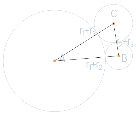 Dane są styczne okręgi, których środki leżą na punktach A, B, C. Wykaż, że, obwód trójkąta i suma długości tych średnic wynoszą tyle samo.