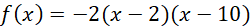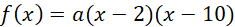 W tym zadaniu należy wyznaczyć postać iloczynową wzoru funkcji kwadratowej, o której wiadomo, że: jej miejscami zerowymi są 2 i 10, a na wykresie leży punkt