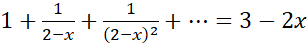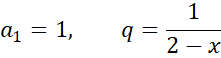 W podanym równaniu zauważ szereg geometryczny i na tej podstawie wyznacz jego pierwszy wyraz i iloraz ciągu. Następnie skorzystaj z tego, że szereg geometryczny jest zbieżny, gdy jego iloraz spełnia nierówność: