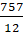 757 : 12 = 63 r. 1
