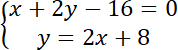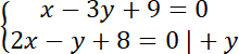 Aby wyznaczyć wierzchołki, oblicz współrzędne punktów leżących na przecięciu się prostych. Wierzchołek A jest na przecięciu się prostych AB i AC: