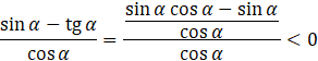 Jeden z kątów ostrych w trójkącie prostokątnym ma miarę 𝛼, wyznacz znak wyrażenia