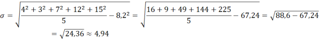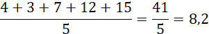 Wylicz średnią arytmetyczną i odchylenie standardowe: 4, 3, 7, 12, 15.