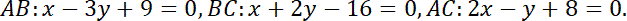 Wyznacz prostą prostopadłą do boku AB i przechodzącą przez wierzchołek C. Będzie ona zawierała wysokość: