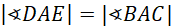 styczna jest prostopadła do promienia poprowadzonego do punktu styczności. Kąty DAE i BAC są wierzchołkowe. Skoro dwa kąty w trójkącie są identyczne, to z sumy kątów w trójkącie trzeci też będzie identyczny, czyli te dwa trójkąty będą do siebie podobne na podstawie cechy kkk.