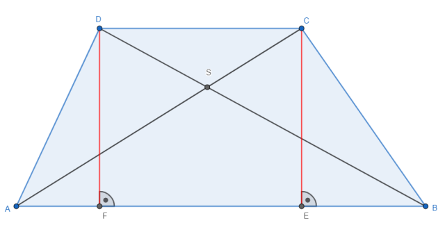 Możemy zauważyć, że pola trójkątów ABD i ABC są sobie równe, ponieważ mają wspólny bok |AB| oraz równe długości wysokości opadających na ten bok (CE = DF). Można zapisać to w następujący sposób: