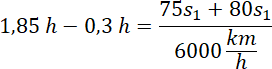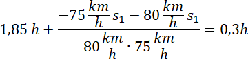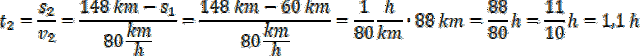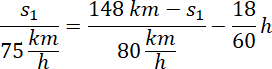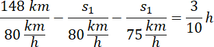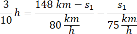 Z dwóch miast oddalonych od siebie o 148 km wyruszyli jednocześnie motocykliści, jadący naprzeciw siebie – pierwszy z prędkością 75 km/h, a drugi 80 km/h. Po ilu godzinach nastąpi spotkanie, jeżeli pierwszy motocyklista przerwał jazdę na 18 minut?