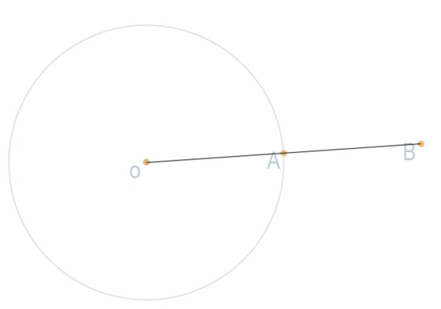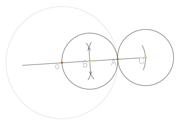 Odłóż długość odcinka OA po drugiej stronie okręgu.
