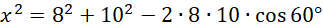 Wyznacz długość boku x z twierdzenia cosinusów. Następnie wyznacz skalę podobieństwa większego trójkąta do mniejszego trójkąta.