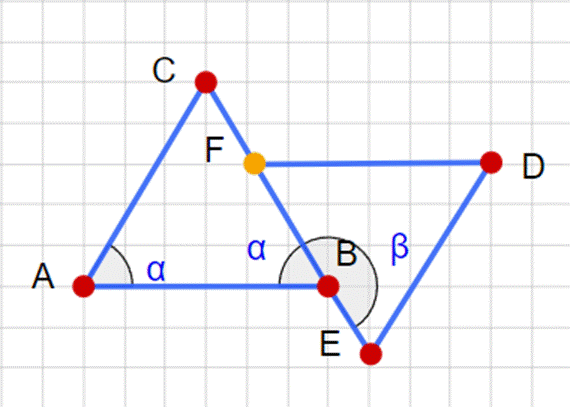 Zauważ, że w pierwszej figurze jeden z kątów wewnętrznych ma miarę taką, jak kąt trójkąta, a drugi jest złożony z dwóch takich kątów.