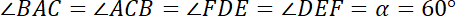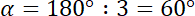 , a w trójkącie równobocznym wszystkie kąty są równe, więc aby policzyć miarę kąta podziel