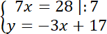 Najpierw wyznacz prostą, zawierającą odcinek AB. Stwórz układ równań, aby wyznaczyć a i b: