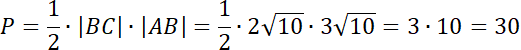 Pole obliczysz wyznaczając najpierw długości przyprostokątnych: