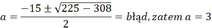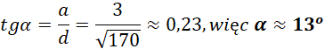 Wyznacz a za pomocą równania kwadratowego, a następnie skorzystaj z funkcji trygonometrycznej, aby obliczyć miarę kąta.