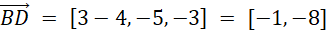 Aby dowiedzieć się, jakie są długości przekątnych równoległoboku ABCD, należy obliczyć najpierw ich współrzędne, a następnie ich długości, skorzystamy z dodawania wektorów metodą trójkąta.