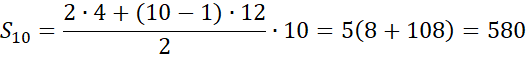 Wyznacz sumę dziesięciu początkowych wyrazów o numerach parzystych, jeśli drugi wyraz ciągu arytmetycznego jest równy 4, a czwarty jest równy 16.