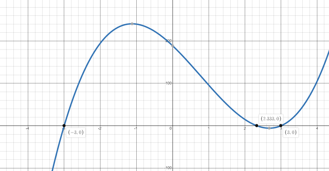 Zapisujemy założenia. Następnie przemnażamy przez kwadraty mianowników, co prowadzi nas do równoważnej równości wielomianowej, którą rozwiązujemy poprzez grupowanie. Szkicujemy wykres i zapisujemy odpowiedź z uwzględnieniem założeń.